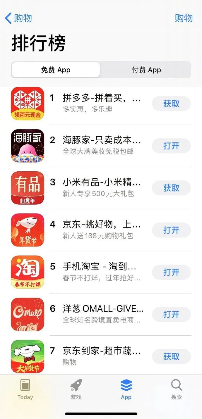 通过口罩营销,海豚家App的下载量在2月6日攀升至苹果应用商店购物类排行榜第二名,排名超过京东、淘宝、小米有品等知名购物类App。