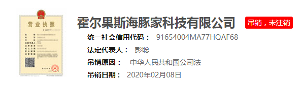国家企业信用信息公示系统的数据显示,由于本次口罩风波,霍尔果斯海豚家科技有限公司已经被霍尔果斯市场监督管理局吊销营业执照,吊销日期为2020年2月8日。