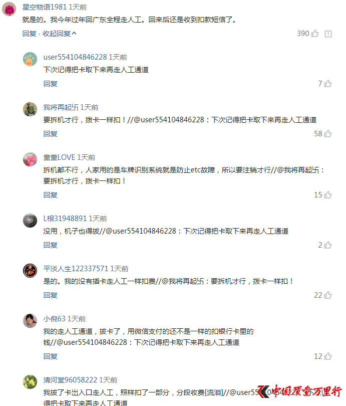 @花名雷锋:我这几天一共收到三次共七十多块扣费了,我最后一次上收费高速是1月23日大年二十九广州回来惠州,还有年初六上过高速,但那时候是免费期间,真搞不懂他们。