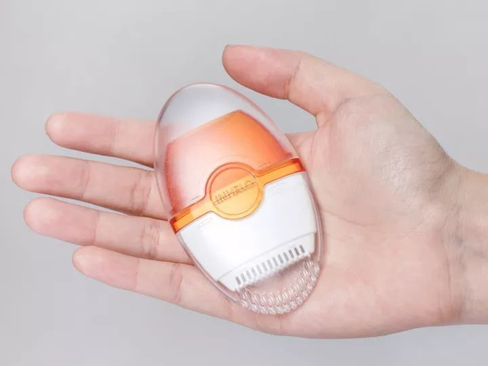 这是鼻吸款,由上下两个透明壳子罩着,只比普通鸡蛋大了一点点。