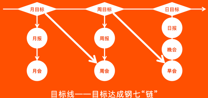 疫情期间,员工在家办公,如果没有清晰的目标,他可能一直躺在床上“工作”。所以管理者要把目标划分到每一位员工身上,目标必达,使命必达。目标的背后是奖勤罚懒、奖优汰劣。如何让员工达成目标,我分享给大家一个方法论——“目标达成的钢七连”。