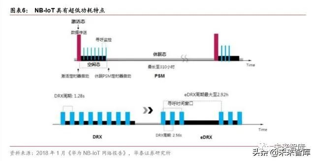 3. NB-IoT 物理层精简了很多物理信道和信号,减少了空口令开销。4. NB-IoT 可以实现终端设备能够长期休眠,并在激活后能快速接入核心网。