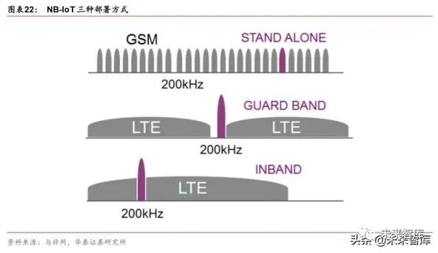 但相比之下,独立部署的模式,在频谱上 NB-IoT 独占,不存在与现有系统共存问题,且 具有容量最优、满足覆盖要求、满足能耗目标、时延要求等优势。故而 2G 退网进度提速 有利于 NB-IoT 的部署进展,以及实现最优性能。