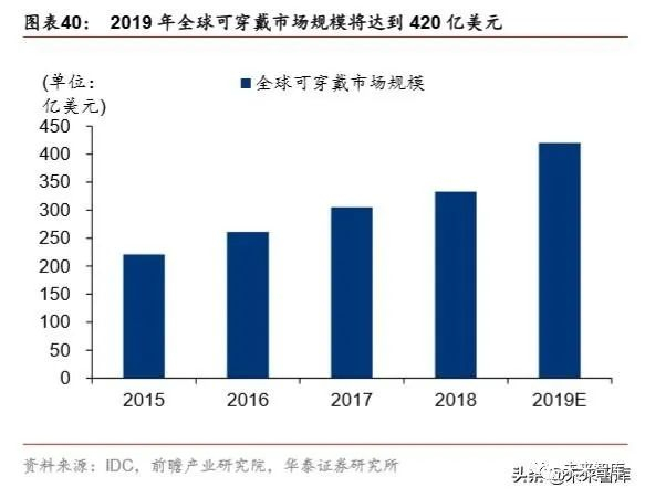 可穿戴领域的新兴力量。NB-IoT 健康手环不同于其它可穿戴产品,佩戴者不需要随身携 带手机,这为较少使用手机的老人和儿童群体提供了极大的便利。根据 IDC 监测数据, 2012-2018 年,全球可穿戴设备出货量呈现快速增长趋势,2018 年全球可穿戴设备出货 量达到 1.72 亿台,同比增长 27.5%,预计 2019 年市场规模将达到 420 亿美元。