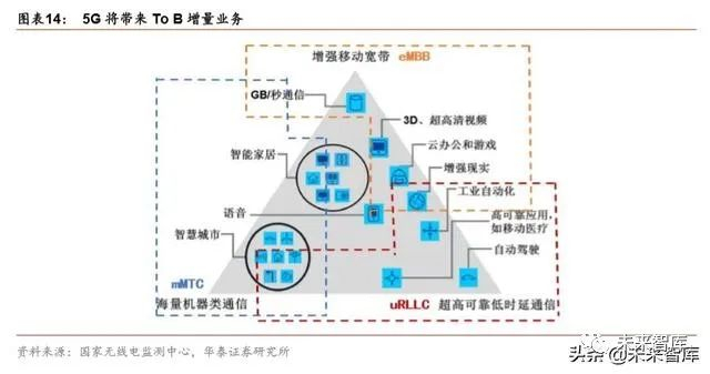 5G 将为运营商带来 To B 增量业务。2018 中央经济工作会议提出 2019 年重点工作任务, 其中特别指出加快 5G 商用步伐,加强人工智能、工业互联网、物联网等新型基础设施建 设。三大运营商积极响应国家号召,加快 5G 建设,努力拓展新的业务增长点,推进 5G 战略部署,从 2C 端业务逐步转向 To B。5G 应用场景下的物联网、车联网、工业互联网 等方向,结合大数据和人工智能技术的发展,有望成为运营商拓展 To B 业务的增长点, 助力营业收入进一步提升。