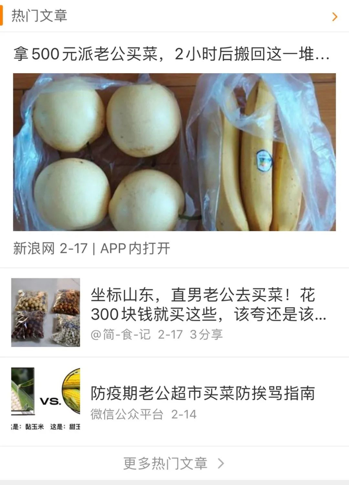 由于疫情严重,很多小型商超菜场暂停营业,大型市场则限制了营业时间。在专家媒体呼吁没事别出门的声音中,出门买菜的一度变成了身强力壮的男人们。