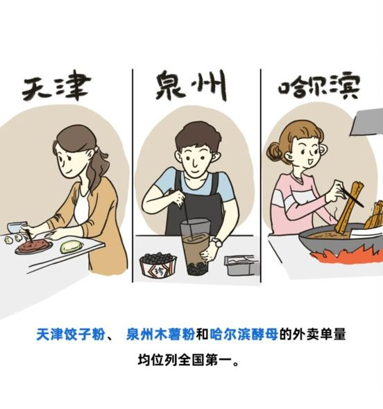 无疑,北方确实是吃面大户,如天津人购买饺子粉的外卖单量位居全国第一、哈尔滨人购买酵母的外卖单量均位列全国第一;