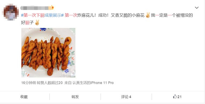 另一种可比肩凉皮的热门自制美食是油条,不过由于油条对做饭新手而言难度稍大,网友们便把希望寄托在了万能的母亲身上,希望亲妈赢得油条大战!
