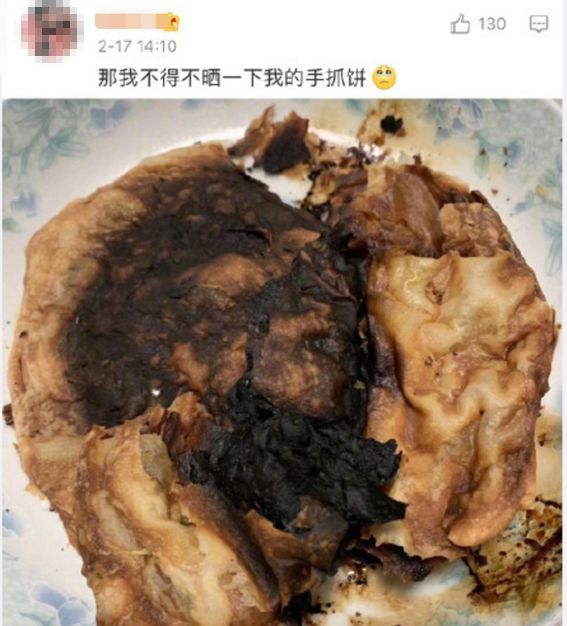 只要热一下就好的半成品手抓饼,能弄成这样也是一种本事。
