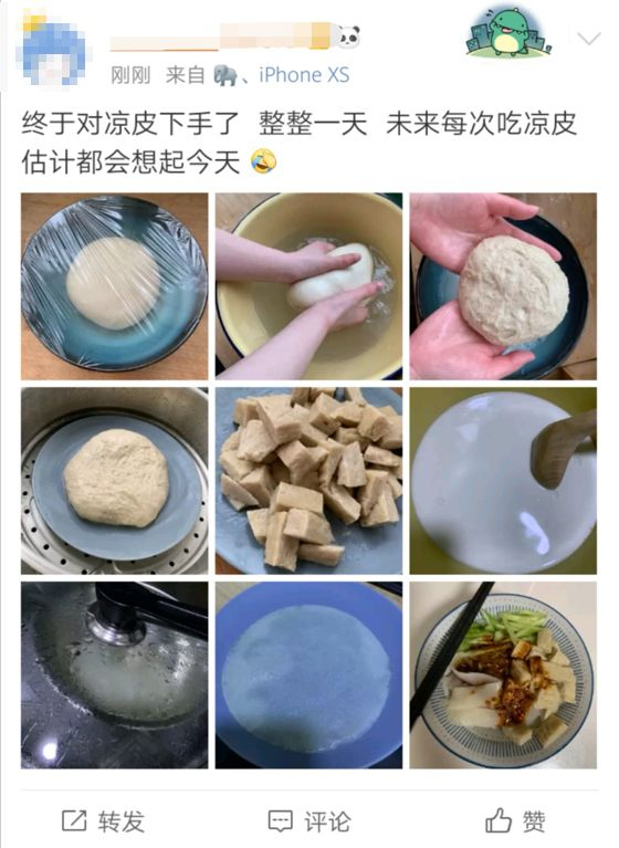 在研究一番大伙儿做的食物之后我发现,宅家美食中呼声最高的是凉皮——管饱、爽口、劲道、有味儿,谁不爱呢?