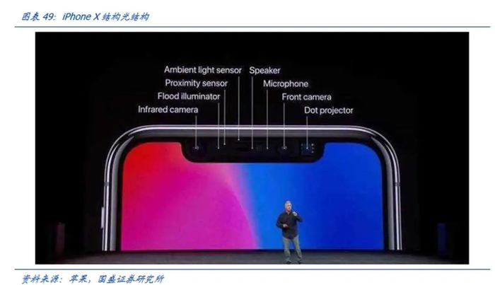 我们预计ToF和结构光的BOM成本大约为12~15美元和20美元,相比之下TOF更具有成本优势。以iPhone X为例,结构光技术的解决方案包括三个子模块(点投影仪,近红外摄像机和泛光照明器+接近传感器),而ToF解决方案则将三个集成到一个模块中,可以将包装成本降低。
