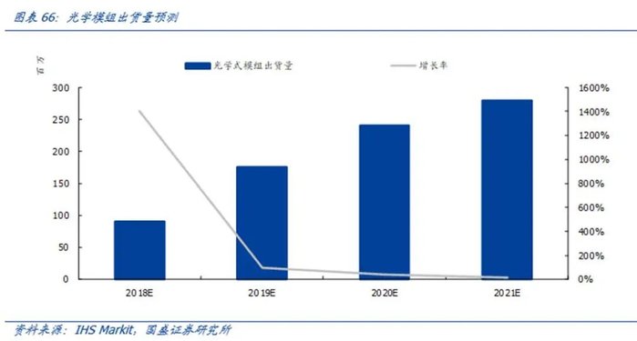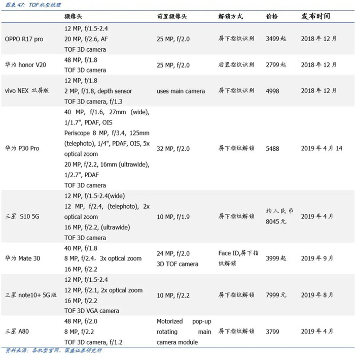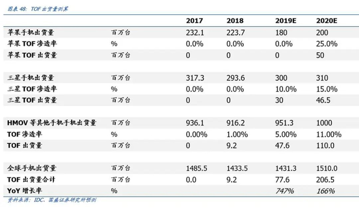 我们预测2019/2020年TOF的出货量为7760万/2.1亿部,同比大幅增长747%/166%。