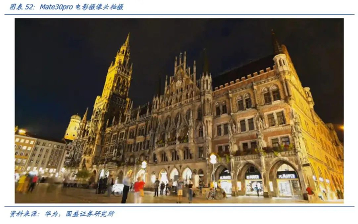 在拍照方面,华为手机P系列和Mate系列长期霸榜DxOMark榜单第一名位置,华为在Mate 30系列的相机也进行的重点的升级。Mate30 Pro是全球首个商用双后置4000万摄像头的手机,并拥有超高的ISO和双OIS光学防抖,新加入的4000万像素电影摄像头,1/1.54英寸感光元器件,是华为手机迄今最大的一颗感光元件,支持超高清的夜景摄像,支持最高7680帧的超级慢动作功能,每秒定格7680个瞬间。同时华为Mate30 Pro电影摄像头支持超高清夜摄,视频感光度最高可达ISO 51200,主要得益于新的传感器和麒麟990的ISP 5.0。
