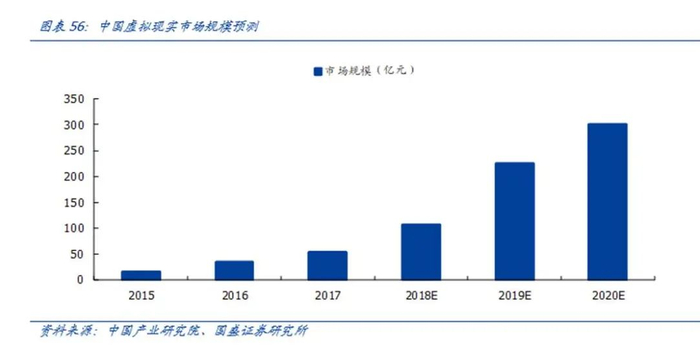 中国的虚拟现实技术的日渐成熟,市场规模将进一步扩大,中国产业研究院预计2018年中国虚拟现实市场规模将突破百亿元大关。到了2020年中国虚拟现实市场规模将达到300亿人民币。