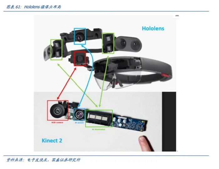 3D摄像头技术提供的手势识别功能将成为未来AR/VR领域的核心交互手段。目前各大厂商推出的VR设备大都需要控制器,游戏控制器的优势在于控制反馈及时、组合状态多。以HoloLens为例,就拥有一组四个环境感知摄像头和一个深度摄像头,环境感知摄像头用于人脑追踪,深度摄像头用于辅助手势识别并进行环境的三维重构。