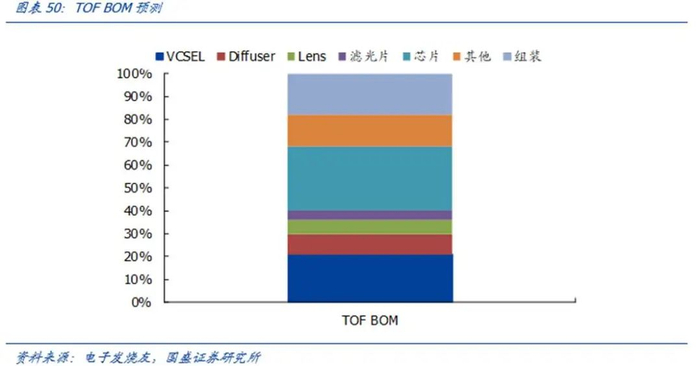 我们预计在这个TOF模组中,芯片的成本仍占主要的部分,大约占到整体BOM的28%~30%。