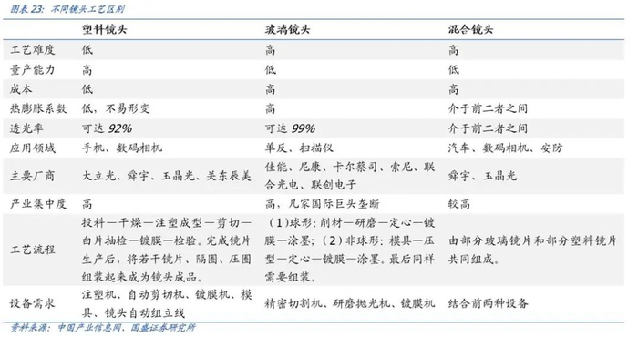 镜头制造的难度不仅体现在技术上,还体现在1)原材料的集成、制造工艺等方面,因为设计成功不代表可以制造出来,制造工艺需要不断地积累和沉淀;2)模具需要经过精加工,工艺非常难,目前日本和中国台湾在模具方面有优势;3)镜头的可塑性,随着智能手机越做越薄,镜头要做到4mm或者更薄,里面的镜片可能是0.2mm,组装过程中如何做到不变形、不裂,并且将几个镜片叠加在一起,这些都需要经验的积累,只有技术、设备不能将最终的镜头做到出色。