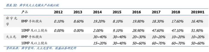 舜宇技术不断升级,与龙头厂商差距减小。舜宇在中高端智能手机份额逐渐增长,公司在2018年实现48M及7P镜头的量产,技术和产品规格,竞争力不断增强,与行业龙头厂商的差距逐渐减小。