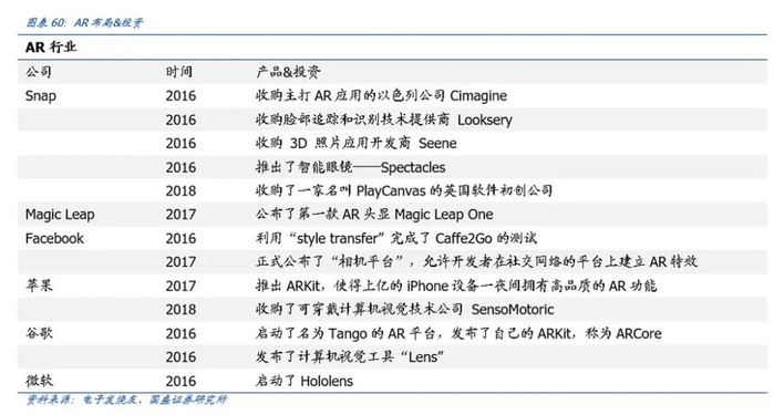 各大厂商积极布局AR\VR领域,进行了一系列的收购与投资。