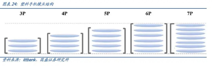 对于手机镜头而言,镜片片数越多,光线过滤、成像和色彩还原的效果越好。7P镜头还进一步提升镜头的聚光能力和解析能力。手机厚度是多镜片的瓶颈限制之一。7P可应用于48MP主摄像头,未来继续升级。