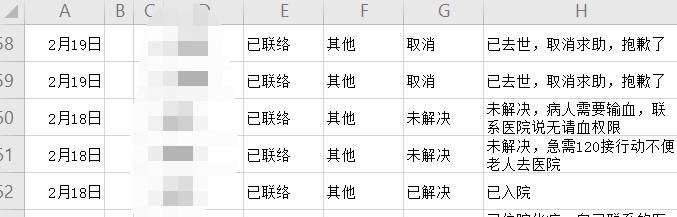 武汉援助志愿者团队搜集的非肺炎患者求助信息