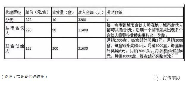 每个级别的代理,拿货价差分别为100元、70元,最低级别的总代零售一盒产品可以赚到170元差价,最高级别的联合创始人则可以赚到340元。任先生还告诉记者,成为益阳春的总代,将得到授权成为仁和药业旗下人参玛咖五宝茶、人参玛咖片的代理,分别享受代理价25元/盒、35元/盒,而这两款产品的电商零售价分别是69元/盒、138元/盒。相较于面向普通消费者销售产品,代理们更倾向于扶持新代理。任先生说,一个城市合伙人,如果招到一个总代,一次就能赚到不菲的产品差价,并且是一条可持续的销售渠道,因为新加入的代理只能通过自己的上线拿货。根据我国《禁止传销条例》,要求被发展人员以交纳一定费用为条件取得加入资格,或通过对被发展人员以其直接或者间接发展的人员数量或者销售业绩为依据计算和给付报酬等行为,属于传销。益阳春的营销模式中,代理以认购商品的名义变相交纳入门费,三层代理,差价计酬,是不是在打“擦边球”?而从电商平台看,益阳春并不像宣传文案中说的那么广受欢迎、销售火爆。销量排在首位的淘宝店铺,月销也仅7盒。那么,这样的产品,到底是卖给消费者,还是为代理而设计?除了益阳春,魔娅仁和全色调理贴、仁和小红膏、小绿瓶等诸多产品都采用类似“层层分销+奖励”的微商营销模式。在产品贴吧及公开投诉平台,多位代理称,仁和的产品比同类产品价格高得多,销售困难,退货渠道不畅,“信任仁和大品牌,结果上当受骗”。为核实具体情况,记者在对仁和药业证券部发去的采访函中明确提问此类问题,截至发稿未获回应。巧的是,今年1月,天津市公安机关对权健自然医学科技发展有限公司涉嫌组织、领导传销活动罪和虚假广告罪立案侦查;同一时期,不少网友在仁和药业的投资者交流平台发帖提示股民注意仁和涉传被查的风险。