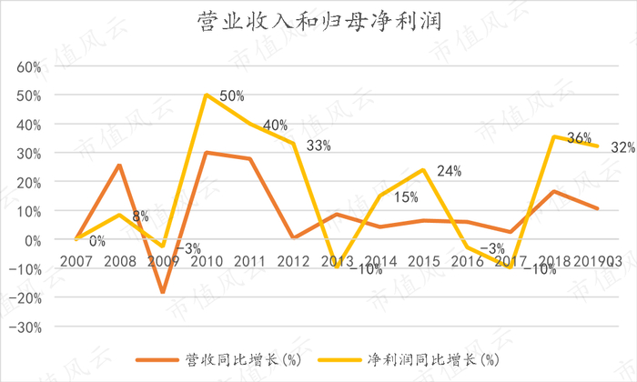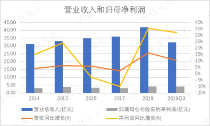 2019年前三季度,业绩继续保持良好增长态势:营业收入同比增长11%至32.19亿;归母净利润同比增长32%至4亿。