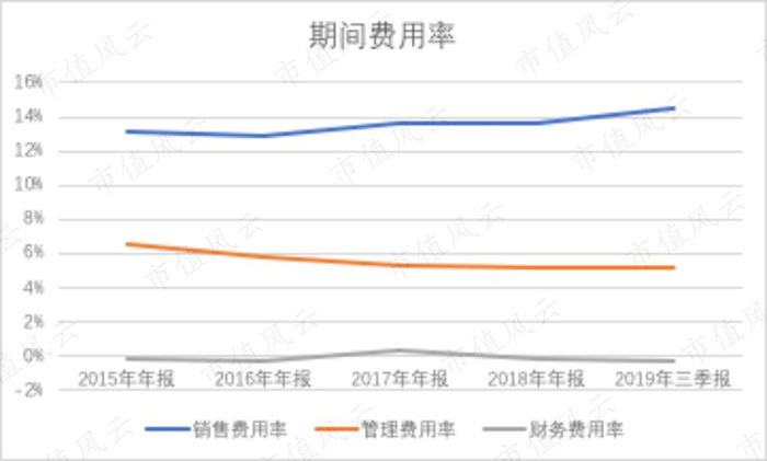 公司期间费用率比较稳定,销售费用率在14%左右,管理费用率约5%。