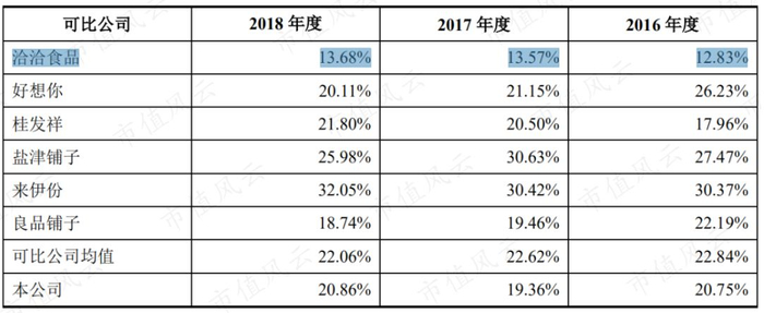 与同业上市公司相比,洽洽食品的销售费用率最低,同业均值约21%。