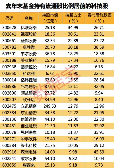 基金抱团的科技股名单来了 筹码最多被锁定35%(名单)