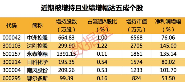 近日32股被增持 11只业绩暴增
