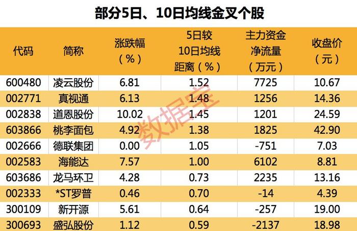 截至2月24日收盘,有29只A股的5日均线主动上穿10日均线,其中凌云股份、真视通、道恩股份等个股的5日均线较10日均线距离最大,分别达1.52%、1.48%、1.45%。