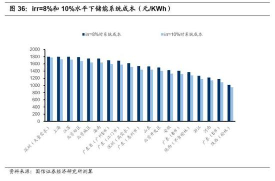 进一步我们将模型应用于其他地区进行测算,可以发现,目前在广东(部分地 区)、上海、江苏、海南和山东地区,大工业用户配置储能系统的 irr 可以达到 8%。
