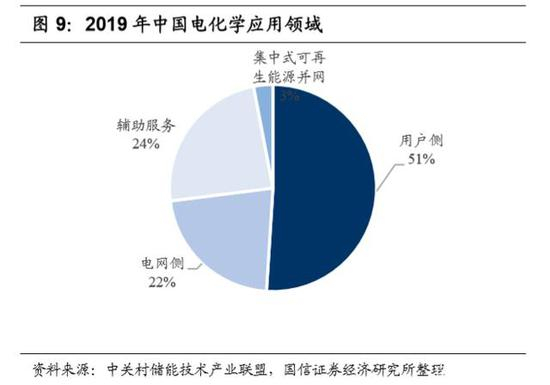 2019 年为国内储能减速调整期,储能将向更加市场化方向发展。根据 CPIA 统 计数据,截至 2019年底,我国电化学储能累计装机 1592.3MW,同比增长 48.4%; 新增装机 591.6MW,同比下降 23.7%。忽略 2018 年相对激增,储能行业仍然 是维持稳步增长的状态。就应用端来看,用户侧仍是储能最大的应用市场,占 比为 51%。此外,2019 年广东、湖南等地电网侧火储联合投运装机较多,但 《输配电定价成本监审办法》的出台,明确了“电网企业投资的电储能设施明确 不计入输配电定价成本”。意味着短期内电网侧项目建设缺乏盈利渠道支撑,电 网侧储能的发展受到制约,长期来看,储能将向更加市场化的方向发展。