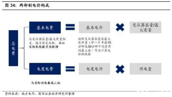 储能需量管理,降低基本电费。理论上仅通过削峰填谷套利,储能在国内用电 侧难以实现经济性。大工业用户普遍采用两部制电价计费,电费分为基本电费 和电度电费。其中,基本电费与耗电量无关,仅与变压器容量或最大需量相关; 电度电费与耗电量呈正比。当储能应用于大工业用户侧时,除实现一般削峰填 谷套利降低电量电费外,同时也可进行需量管理,降低基本电费,带来双重收 益。