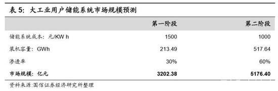 第二阶段:当系统成本降至 1000 元/KWh 时,市场渗透率为 60%的条件下,所 有样本地区 irr 超过 8%,储能装机规模为 517.64 GW,市场规模合计为 5176.40 亿元。