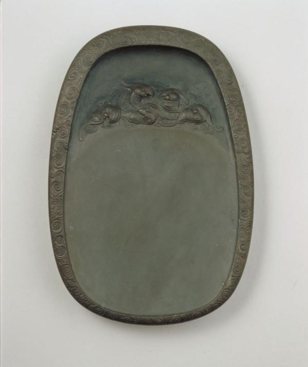 端石寿山福海纹砚,清乾隆,长22厘米,宽15厘米,厚3厘米。清宫旧藏。