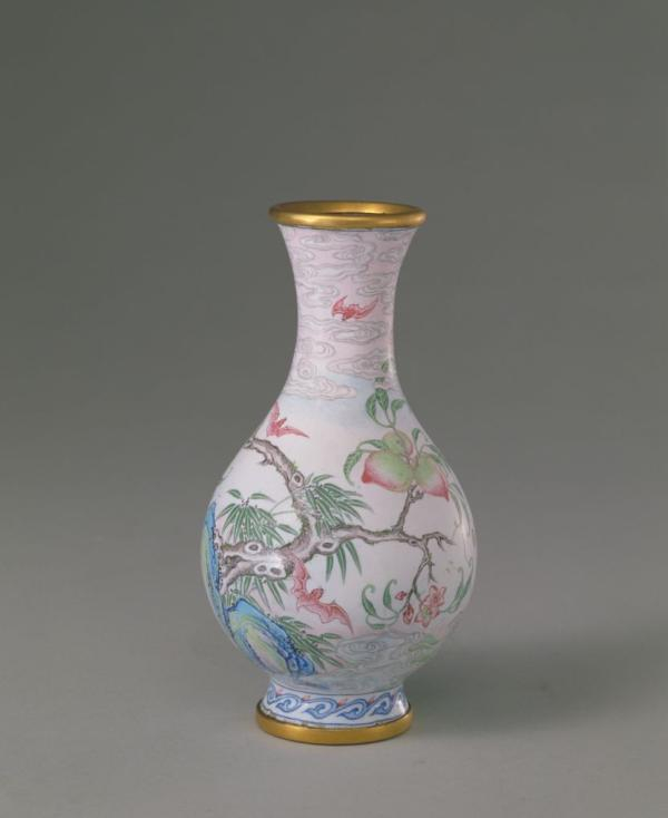 画珐琅桃蝠纹瓶