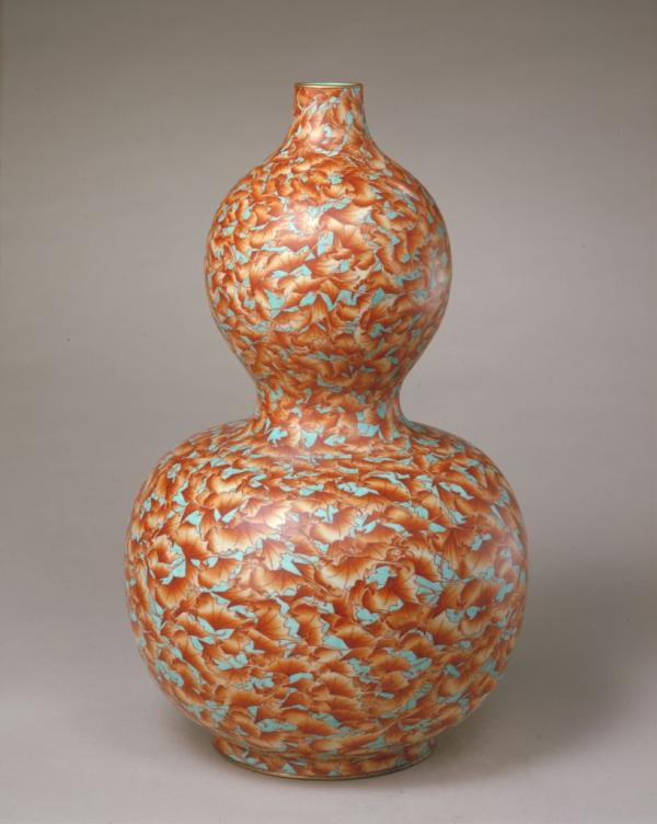 葫芦形瓶是中国古代陶瓷中的传统造型,葫芦的多籽与缠绕的藤蔓被人类赋予多子多孙和延绵不断繁衍的含义。葫芦也是道教的圣物,既是通往仙境的法物,也是存放金丹的容器。