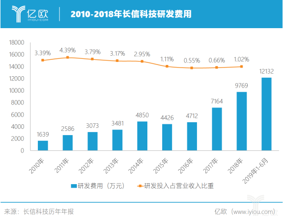 从长信科技历年来的研发费用可以看出,长信科技的研发费用逐年增加,仅在2019年上半年,长信科技的研发投入便达到1.21亿元人民币,较同期增长了224.05%。由此可以看出,长信科技为保持行业竞争力,不断加大新产品、新工艺和新技术的研发投入。
