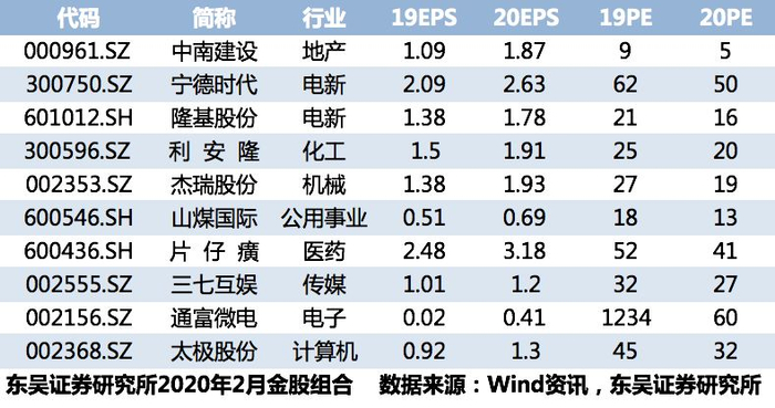 二月十大金股推荐