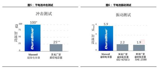 Maxwell干电池发展历史久远,产品丰富,技术好。特斯拉溢价55%收购Maxwell,主要也是看中其独有干电极工艺,并借鉴切换到电池极片生产工艺,为后面的固态电池做技术储备。Maxwell的干电池在冲击和振动的安全测试中均远超规范标准,体现了公司较好的技术。
