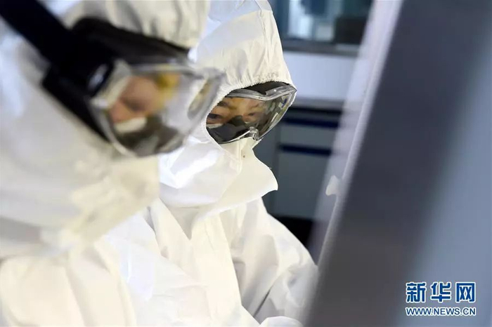 ▲资料图片:负责新型冠状病毒核酸检测的工作人员,在实验室进行样本处理。(新华社发 周牧 摄)