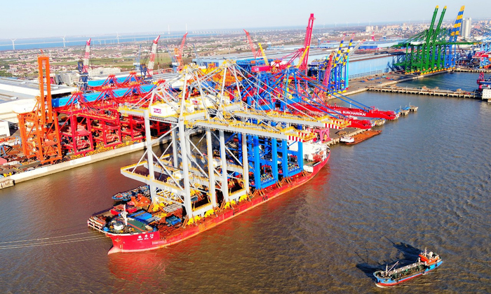 振华重工为荷兰鹿特丹港和德国汉堡港用户建造的4台岸桥起航发运