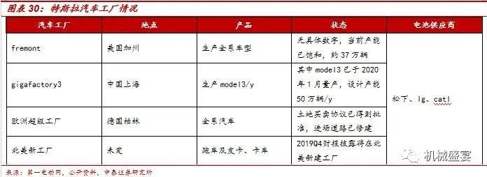 特斯拉扩产。特斯拉作为当前全球新能源汽车企业龙头,2016-2019年实现销量快速增长,且目前仍处于供不应求阶段。当前新建产能方面主要包括:中国上海基地投产、德国工厂建设进行中(环保团体阻挠失败,目前工厂伐木工程继续进行),北美新工厂拟建中。
