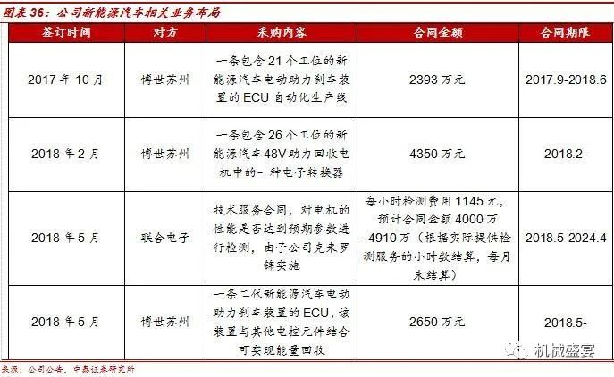 产品受龙头认可,国内首家持续供货博世集团。在汽车电子自动化领域,公司是第一家供货联合电子自动化装备的国内厂商,同时与博世(苏州)保持了长期的业务合作关系,2017年对博世系的销售占总营收的72.86%。公司持续签订新能源汽车类业务合同,2017年10月-2018年累计与博世系签订合同金额约为1.5亿元,主要集中在新能源汽车刹车助力、动力回收ECU制造领域,同时与联合电子签订新能源汽车电机检测合同。