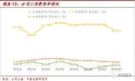 公司费用管控水平较高。2019年前三季度,公司管理费用率为10.16%,同比下降2.3pct;销售费用率为0.95%,同比下降0.31pct。公司整体费用率呈下降趋势,成本管控水平较高。