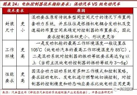 新能源汽车控制器品种多样、性能不断提升。从目前来看,新能源汽车处于高速发展的初级阶段,控制器的大小、安装位置、集成度都在不断变化。例如在混合动力驱动系统中,电力电子控制器需要结合不同发动机、变速箱、发电机的控制策略以及处于不同的工作位置和环境,因此不再具有通用性、互换性以及标准化的条件,而需要根据每个具体的车型产品进行个性化配套设计。故不同厂家之间的混动电机控制器无法共享,甚至同一厂家不同产品之间也无法共享;同时随着电子元器件、电路拓扑结构的不断更新升级,汽车电子控制器的大小也不断变化。