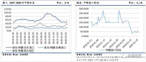 下游烯烃行业在春节期间仅略有下降,大部分烯烃生产装置在春节期间仍继续运行,因此复工情况与去年相比差距不大。但2-4月多套制烯烃装置有检修计划,据隆众资讯,目前宁波1套烯烃装置已停工,南京以及浙江等烯烃装置有检修计划。若检修计划兑现,烯烃开工率下行,将明显缩减甲醇需求,对甲醇价格有较大利空作用。