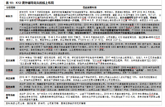 疫情下在线教育较快低成本渗透率提升,龙头依托技术、师资等迎来新机遇, 继续看好“好赛道+真龙头”的双优品种以及线下线上协同发展的种子选手,除好未来、新东方(新东方在线)、跟谁学外,A 股的职教龙头中公教育及大语文赛道立思辰重点关注;其次建议关注中高考补习赛道科斯伍德、早教赛道美吉姆、职业教育与在线课程培训赛道开元股份等细分领域种子选手;教育信息化领域除技术型巨擘外,可适度关注三爱富、方直科技等垂直类公司。